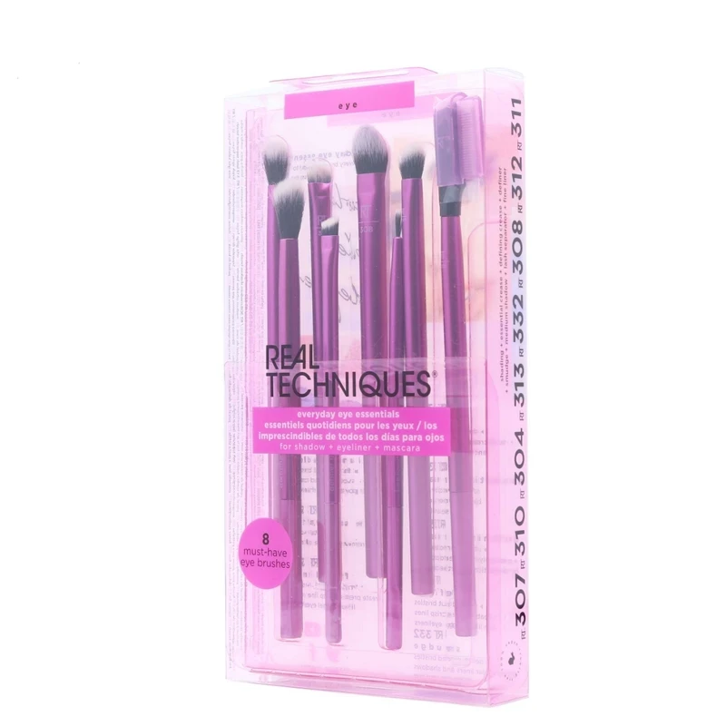 ست 8 تایی براش چشم ریل تکنیک مدل Everyday Eye Essentials، مجموعهای حرفهای و کامل برای آرایش چشم، شامل براشهای باکیفیت و متنوع برای سایه زدن، فید کردن و خط چشم.