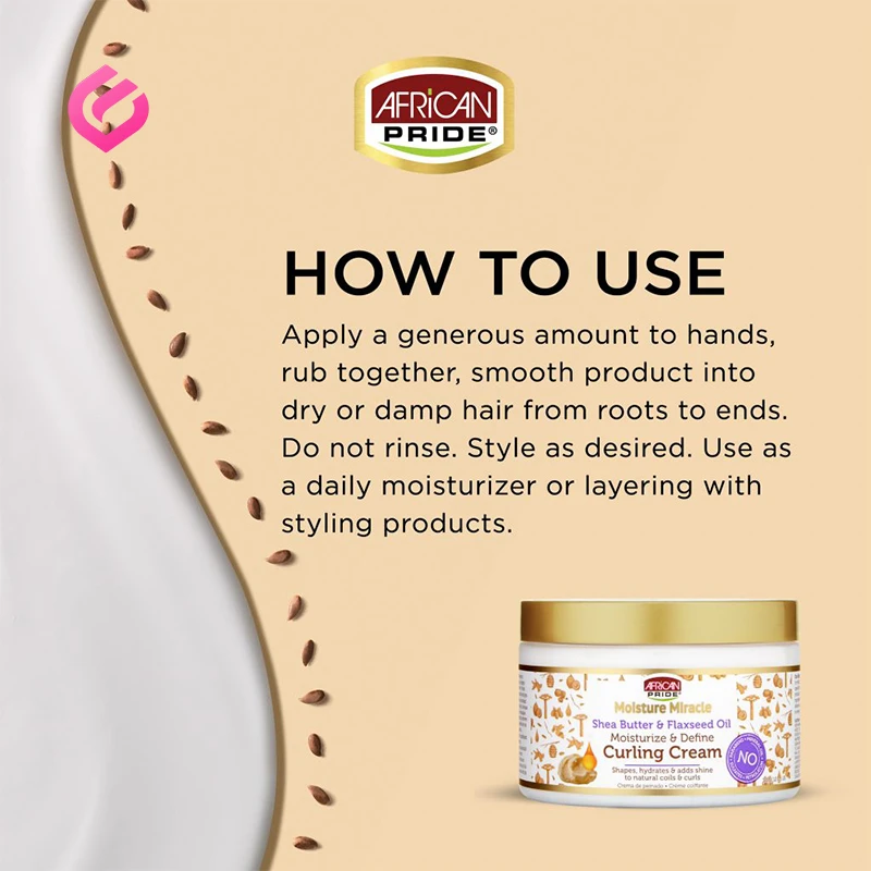 کرم حالت دهنده مو فر بذرکتان و شی باتر African Pride Moisture Miracle Shea Butter & Flaxseed Oil Curling Cream کرمی حالتدهنده، مرطوبکننده و تغذیهکننده برای موهای فر، مجعد و پیچخورده است. این محصول با بهرهگیری از خواص شی باتر (کره شی) و روغن بذر کتان (فلکسسید) طراحی شده تا حالت طبیعی فرها را برجسته کرده، از وز مو جلوگیری کند و در عین حال، نرمی و لطافت را افزایش دهد.