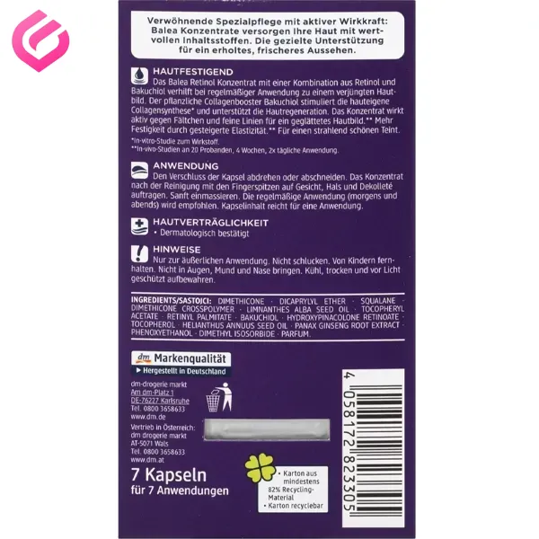 کپسول کنسانتره ضد چروک باله آ مدل Retinol ساخت کشور آلمان، با رتینول خالص برای کاهش چین و چروکهای پوست و جوانسازی سلولهای پوستی، مناسب انواع پوست.