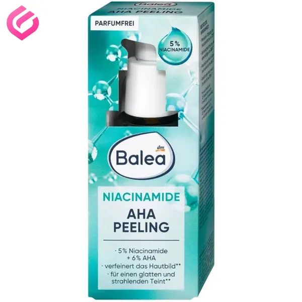 سرم لایه بردار باله آ پیلینگ و نیاسینامید با ترکیب نیاسینامید و AHA، مناسب برای لایهبرداری ملایم، کاهش جوش و منافذ باز، و بهبود درخشندگی و یکنواختی پوست.
