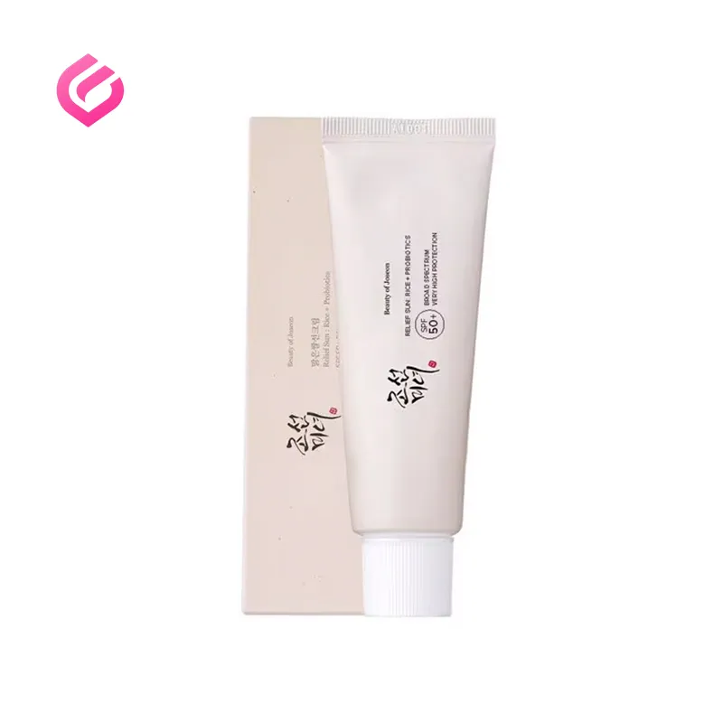 کرم ضدآفتاب Beauty of Joseon Relief Sun با SPF50+، حاوی عصاره برنج و پروبیوتیک، سبک، آبرسان و مناسب برای انواع پوست بهویژه حساس. محافظت بالا و بدون سفیدک. ساخت کره.