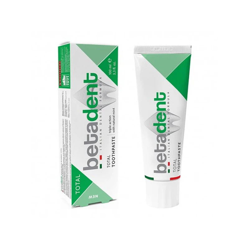 خمیردندان بتادنت Total با فرمولاسیون کامل و محافظتی، از دندانها و لثهها مراقبت کرده و دهانی تازه و سالم برای شما به ارمغان میآورد.