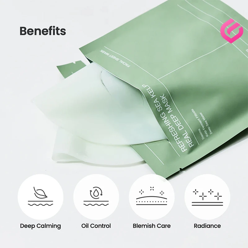 🔸 ماسک ورقهای Biodance Refreshing Sea Kelp Real Deep با عصاره جلبک دریایی و هیالورونیک اسید، به آبرسانی عمیق، تسکین و تقویت پوست کمک میکند. این ماسک رطوبت را حفظ کرده، التهاب را کاهش میدهد و پوست را شفاف و لطیف میکند. مناسب برای انواع پوست، بهویژه پوستهای خشک و حساس.