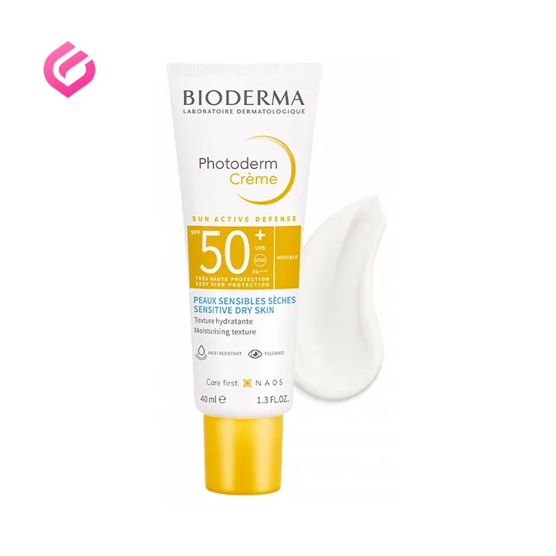 ضد آفتاب Bioderma Photoderm Crème SPF 50+ مناسب پوست خشک و حساس، با محافظت قوی در برابر اشعه UV، رطوبترسانی عمیق و تکنولوژی Cellular Bioprotection. مناسب استفاده روزانه و زیر آرایش.
