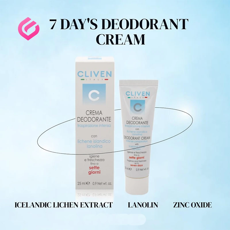 کرم دئودورانت کلیون (CLIVEN) یک محصول تخصصی برای کنترل تعریق شدید و حفظ بهداشت و تازگی پوست است. این کرم از cliven با فرمولاسیون منحصر به فرد حاوی لیکن ایسلندیک (Lichen Islandico) و لانولین (Lanolin)، نه تنها بوی نامطبوع را از بین میبرد، بلکه به پوست آبرسانی کرده و از تحریک جلوگیری میکند.