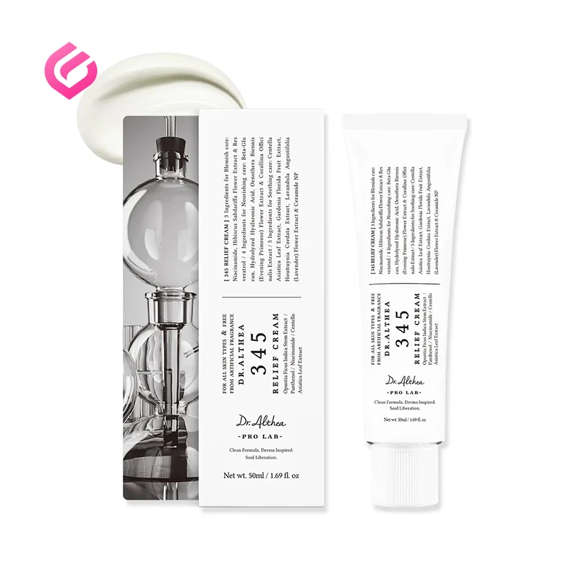 کرم Dr. Althea 345 Relief Cream با 3 نوع هیالورونیک اسید، 4 نوع سرامید و 5 عصاره گیاهی، پوست حساس و ملتهب را تسکین، آبرسانی و ترمیم میکند. فرمول سبک و بدون چربی، مناسب برای استفاده روزانه!