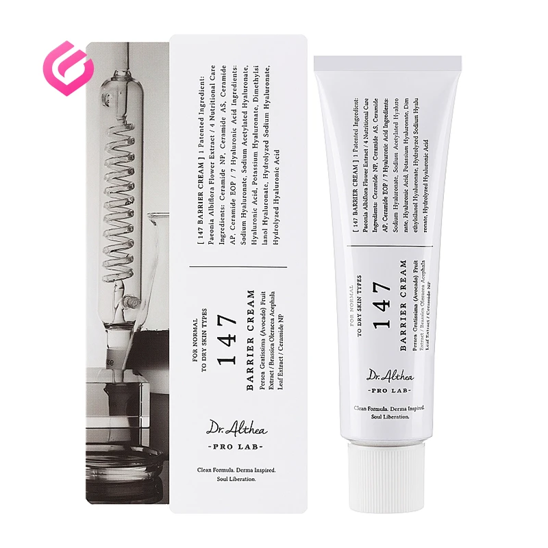کرم 147 دکتر التیا Dr. Althea Pro Lab 147 Barrier Cream یک محصول تخصصی و ترمیمکننده پوست از برند کرهای Dr. Althea است که با فرمولاسیونی غنی و سبک، برای تقویت سد دفاعی پوست، حفظ رطوبت و ترمیم پوستهای خشک، حساس و آسیبپذیر طراحی شده. این کرم بخشی از لاین تخصصی Pro Lab بوده و با استفاده از ترکیبات کلیدی درمانی مانند آزولن (Azulene)، هیالورونیکاسید، نایاسینامید و سرامیدها، پوست را به تعادل بازمیگرداند.