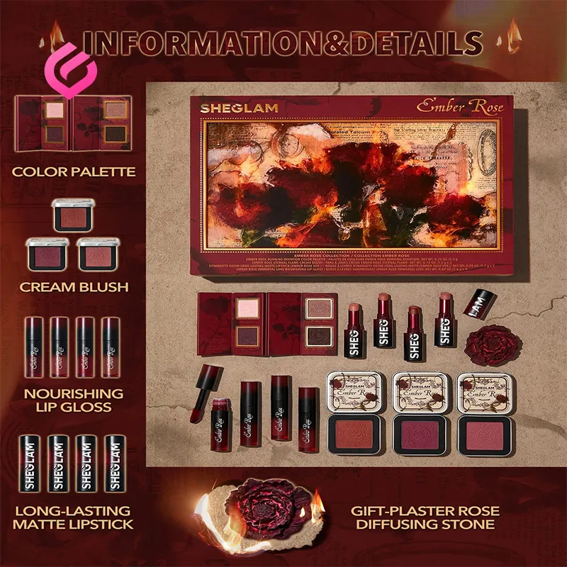 ست آرایشی SHEGLAM Ember Rose با الهام از گلهای رز، مجموعهای خاص با رنگهای گرم، پیگمنت بالا و طراحی لوکس برای خلق آرایشهای زنانه، لطیف و رمانتیک است. مناسب هدیه یا استفاده روزانه.