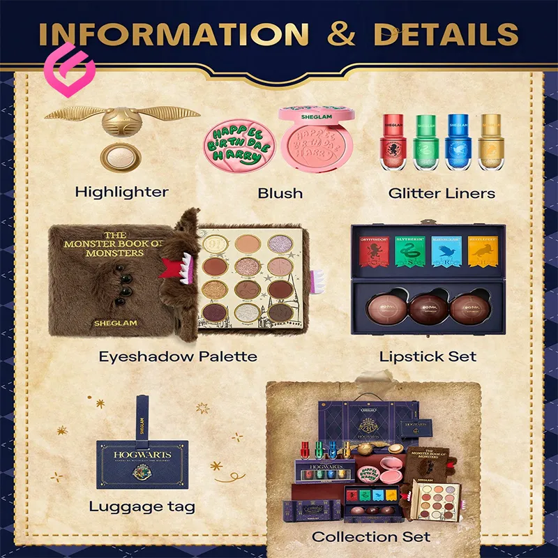 کالکشن آرایشی SHEGLAM x Harry Potter Hogwarts ترکیبی جادویی از آیتمهای فانتزی با طراحی الهامگرفته از دنیای هاگوارتز است. شامل سایه چشم، هایلایتر، بالم لب، رژ لب، و جعبههای کلکسیونی بینظیر. مناسب برای طرفداران هری پاتر.