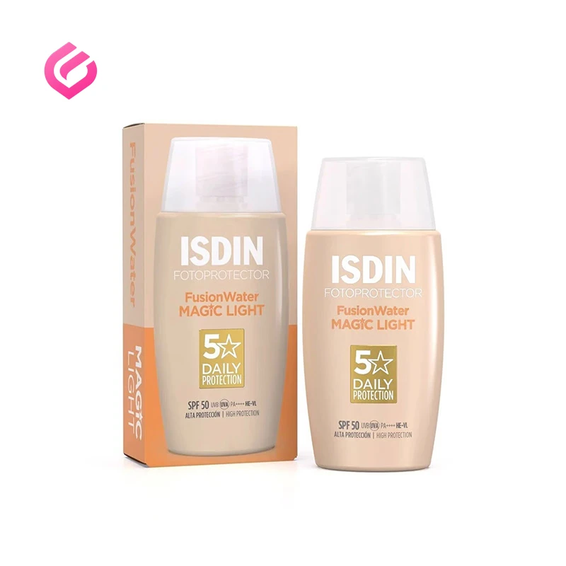 ISDIN Fusion Water MAGIC Light SPF 50 یک ضدآفتاب رنگی و پیشرفته است که همزمان با محافظت بالا در برابر نور خورشید، ظاهری یکنواخت و طبیعی به پوست میبخشد. رنگ “لایت” این محصول مناسب پوستهای روشن تا متوسط بوده و میتواند به عنوان بیس آرایش یا جایگزین کرم پودر روزانه نیز استفاده شود.