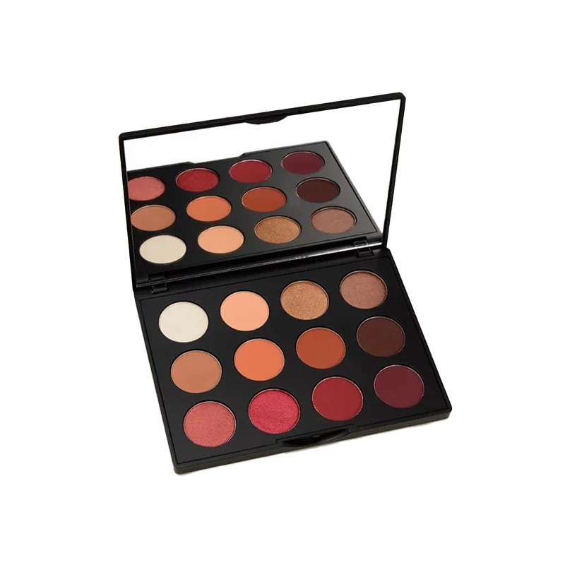 پالت با رنگهای گرم و جسورانه شامل ترکیبات مات و براق، مناسب برای آرایشهای چشم دودی و جذاب، پیگمنت بالا و ماندگاری طولانی |