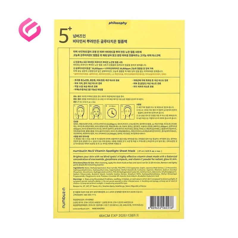 ماسک ورقهای ویتامین C و گلوتاتیون نامبوزین شماره 5+