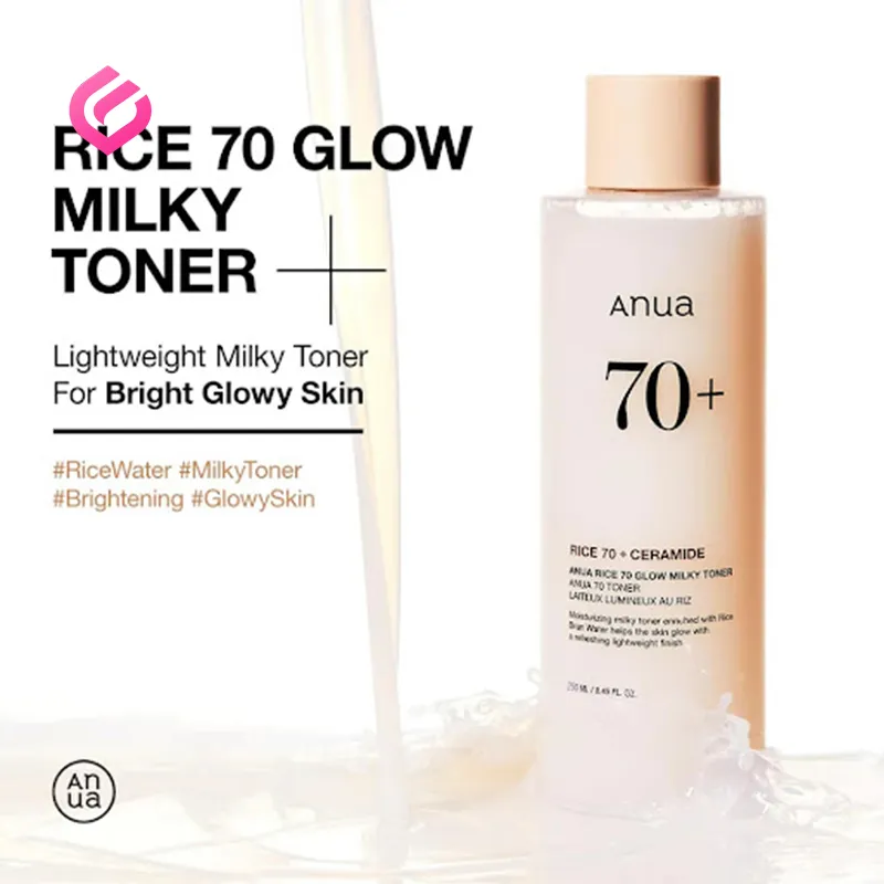 تونر Rice 70+ Glow Milky Toner از برند کرهای Anua یک محصول تخصصی مراقبت از پوست است که با بهرهگیری از 70٪ عصاره برنج به همراه سرامید، به بهبود بافت پوست، آبرسانی عمیق و ایجاد درخشندگی طبیعی کمک میکند. با بافت شیری و لطیف، این تونر بدون ایجاد سنگینی یا چربی، پوست را نرم، شفاف و یکدست میکند.