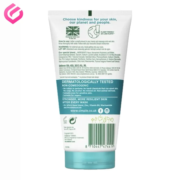 ژل شستشو صورت سیمپل مدل Purifying، بهطور خاص برای پاکسازی عمیق پوست طراحی شده است. این ژل با فرمولاسیون ملایم و بدون مواد مضر، به طور مؤثر آلودگیها، چربی اضافی و آرایش را از روی پوست پاک میکند. ترکیبات طبیعی موجود در این محصول به تسکین و نرم کردن پوست کمک کرده و از خشکی و تحریک آن جلوگیری میکند.