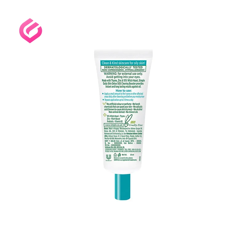 ژل Simple Daily Skin Detox SOS Clearing محصولی حرفهای از برند معتبر سیمپل است که برای کنترل چربی پوست، کاهش لکهها و جلوگیری از ایجاد آکنه طراحی شده است. این ژل با ترکیبات ملایم و در عین حال مؤثر، پوست را از آلودگیها و چربیهای اضافی پاکسازی کرده و به کاهش جوشها و بهبود بافت پوست کمک میکند.