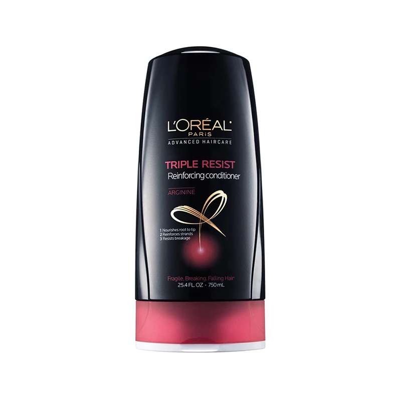 نرمکننده L’Oréal Triple Resist Reinforcing Conditioner موهای ضعیف و مستعد ریزش را تقویت کرده و آنها را مقاوم و حجیمتر میکند. مناسب برای موهایی نرم، قوی و درخشان.